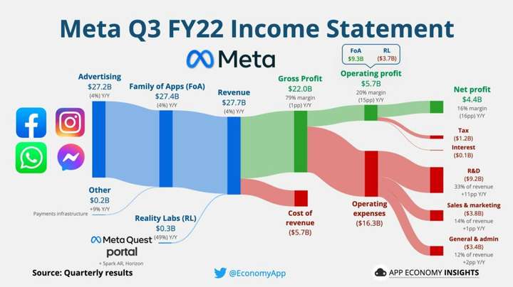 Une visualisation extrêmement claire de l'origine des revenus des cinq GAFAM. Cela illustre bien qu'au-delà de l'acronyme qu'ils partagent, leurs modèles économiques, et donc leurs politiques, sont très différents. Utile en intervention pédagogique donc !