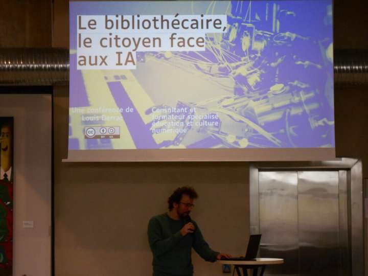 Louis Derrac est intervenu le 21 novembre 2024, aux Rencontres héraultaises de la lecture publique pour une journée consacrée à l'Intelligence artificielle en bibliothèque. Son intervention de 60 minutes intitulée "Le bibliothécaire, le citoyen face aux IA" a permis à l'assistance d'aiguiser son esprit critique face à l'IA avec des enjeux sociaux, politiques, économiques, culturels, géopolitiques, etc.